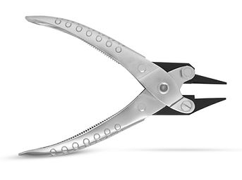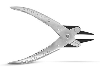 These imported 5-1/2″ long parallel pliers have one jaw that is a tapered round and the other flat. All the surfaces are smooth.